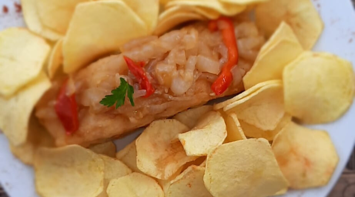 Bacalhau à Braga (Lombo de Bacalhau com Cebolada e Batata Redonda Frita Caseira)