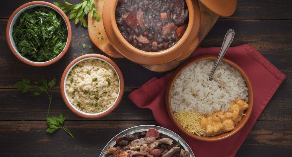 Disponível apenas aos sábados. 1 Dose 1kg de Feijoada 900g de Arroz 300g de Farofa 300g de Couve Torresmo Todos os itens vem em embalagens separadas.