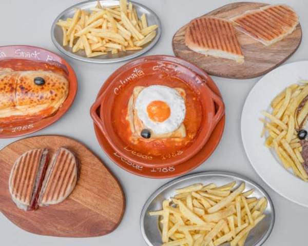 Pão de forma, queijo, fiambre, salsicha, linguiça, bife de novilho, chourição, ovo, batata frita e molho especial.