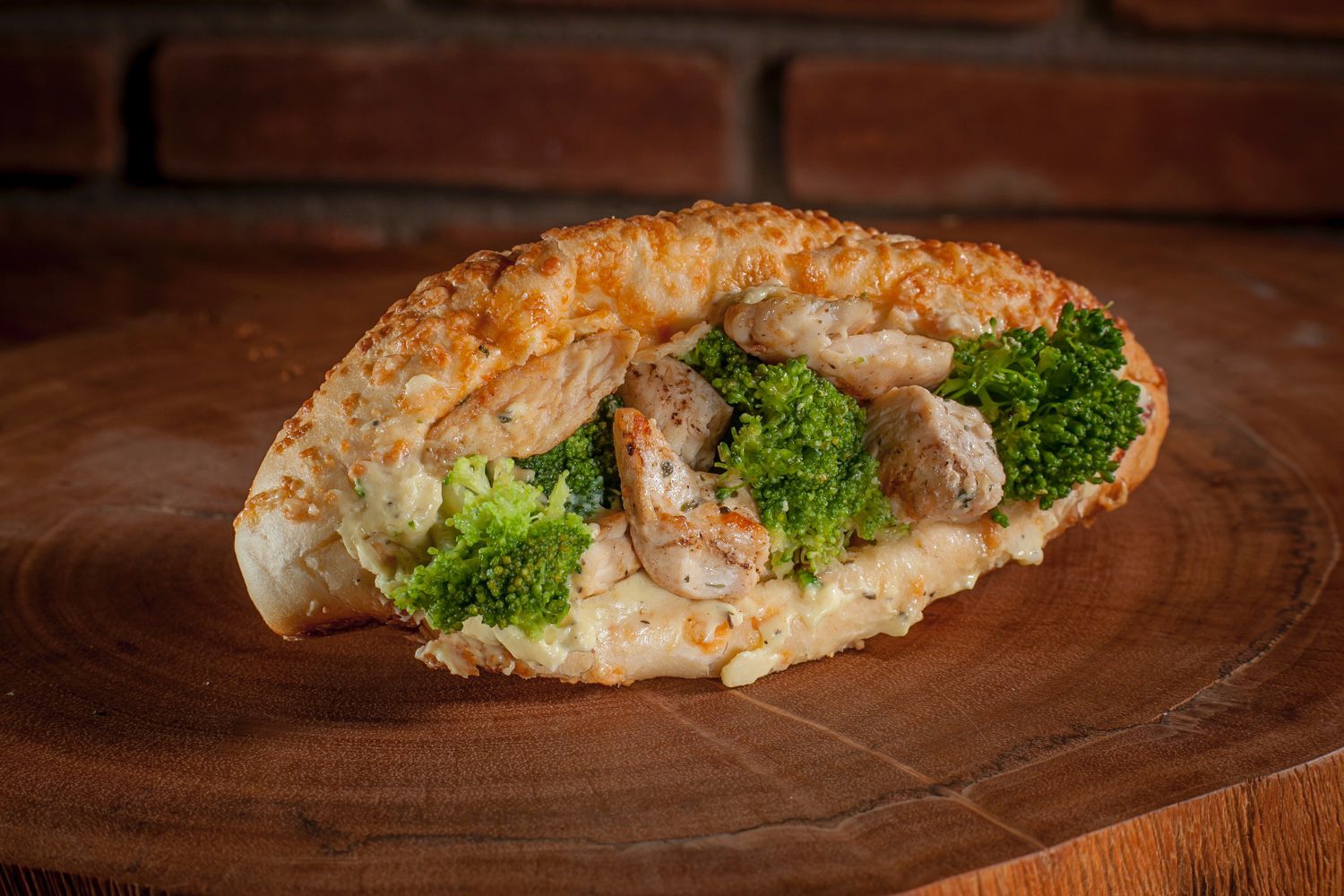 Salsicha no molho de tomate pelado, frango desfiado manualmente, purê de batata bem caseiro, maionese artesanal, 2 fatias de queijo mussarela, milho, vinagrete e batata palha.