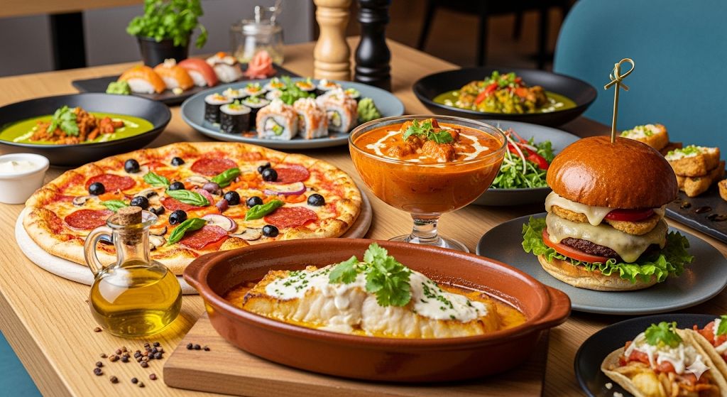 Guisado de carne tenra com vegetais, ervas e molho rico. Servido com arroz e salada fresca. Um prato local reconfortante