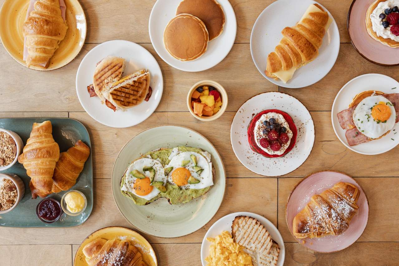 French toast, ovo estrelado, bacon, créme fraîche, mirtilos confitados