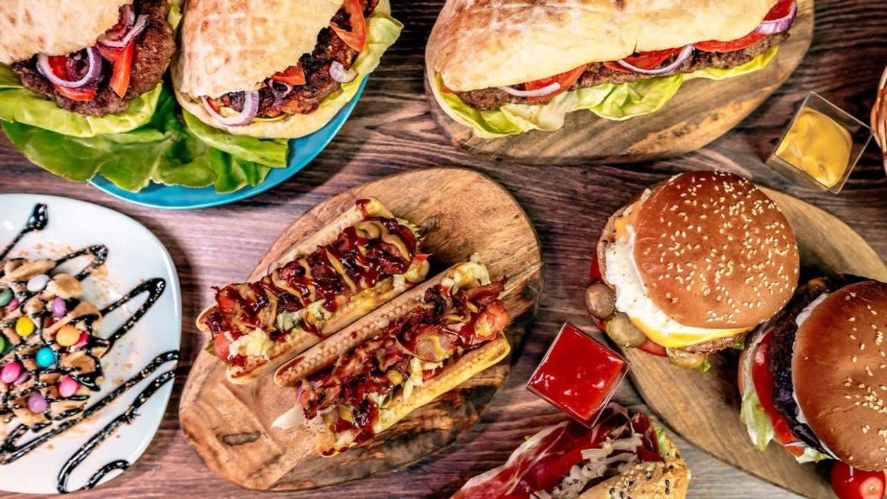 Sarajevsko roštilj meso 100% junetina, duplo meso, dupli has sos, zelena salata, kačkavalj, luk, paradajz, hrskava panceta, cornichons