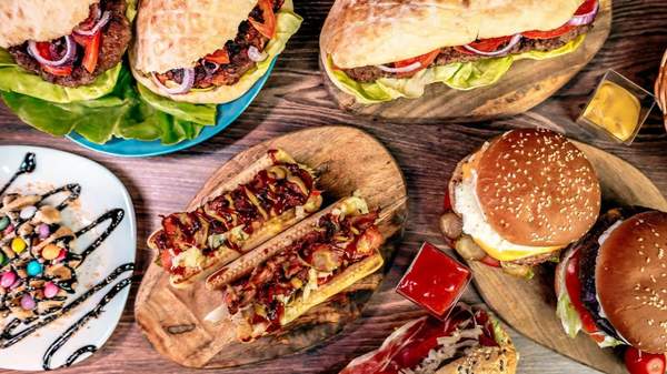 100% veganski burger 120 grama, iceberg salata, paradajz, kiseli krastavci, ljubičasti luk, vegan sos