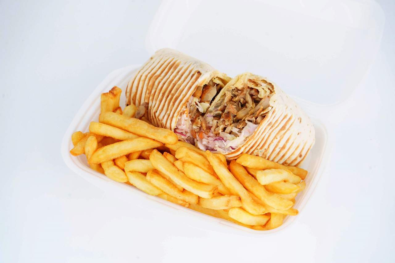 Tortilja, 200 grama pilećeg mesa, 200 grama pomfrita