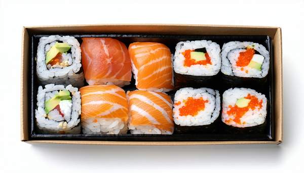 10 pcs: 2 nigiri saumon, 4 maki saumon, 4 katsu