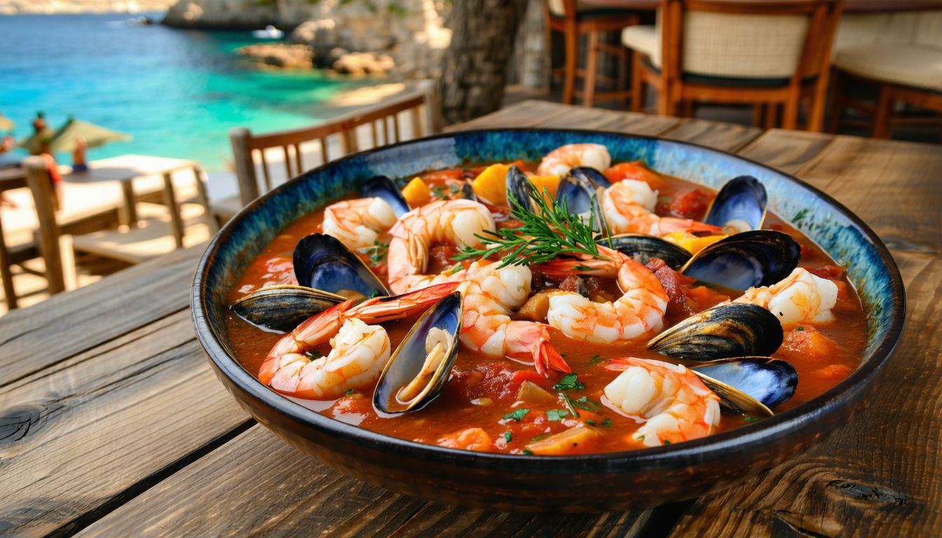 Poisson, riz, pate, tastira, salade mechweya, harissa, mayonnaise, frite