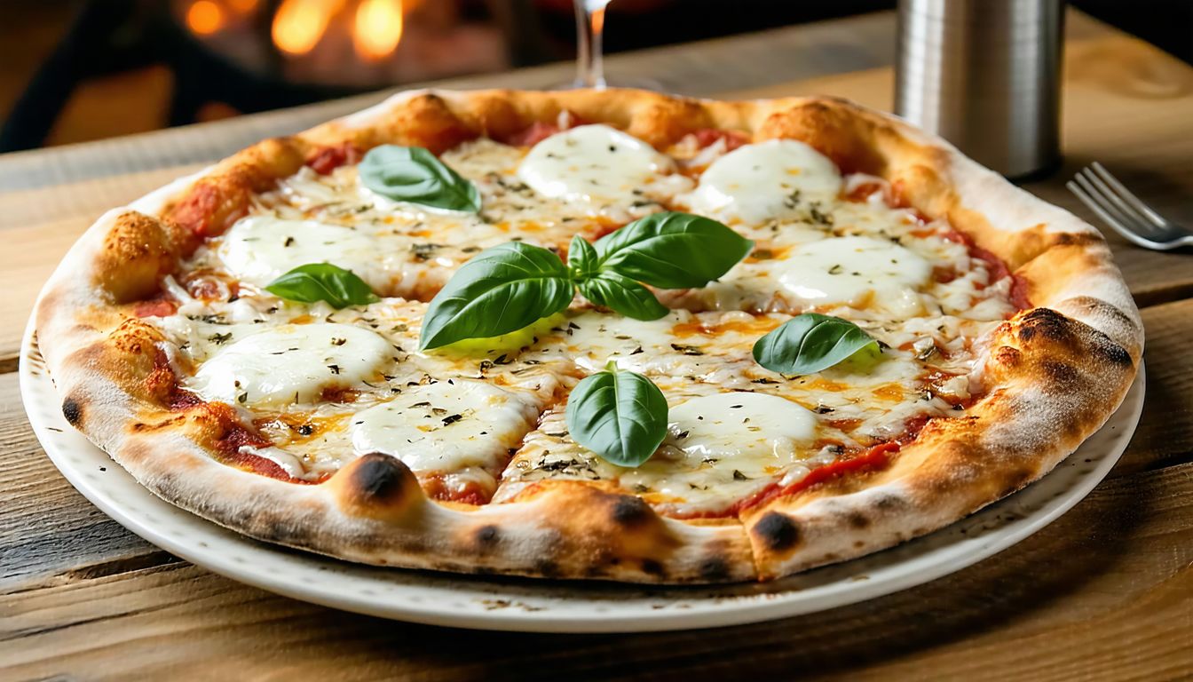 Sauce tomate, mozzarella, poivron, tomate, oignon