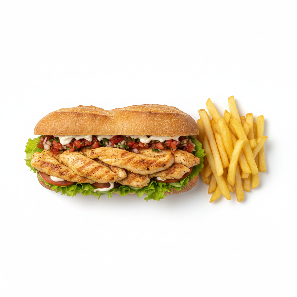 Sauces aux choix, garnitures aux choix, frites, chawarma
