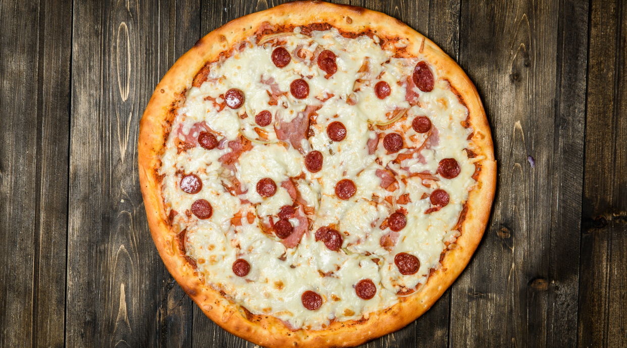 Grande pizza d'un mètre, escalope,chawarma,pepperoni,jambon,thon