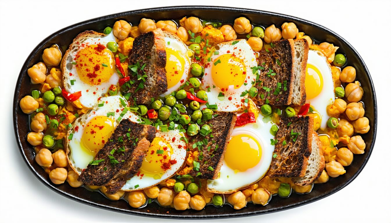 Pois chiches, pain, cumin, harissa, piment de cayenne (bar abid), œuf, huile d'olive, thon