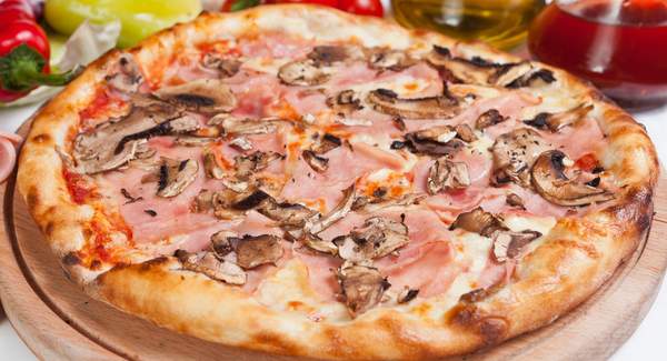 Paradajz sos, Mozzarella, šunka, šampinjoni