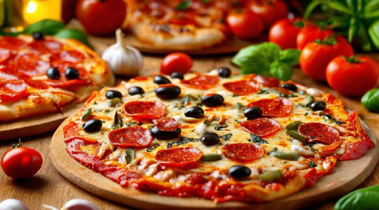 Šunka, paprika, šampinjoni, sir, štapići sa sušenim bijelim lukom, pesto sos