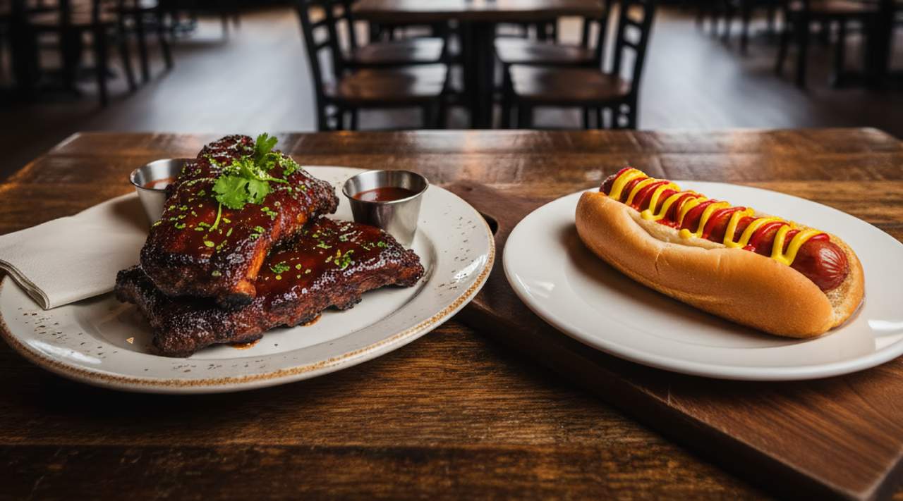 Deliciosas costillas al horno en salsa barbacoa, acompañadas de ensalada americana