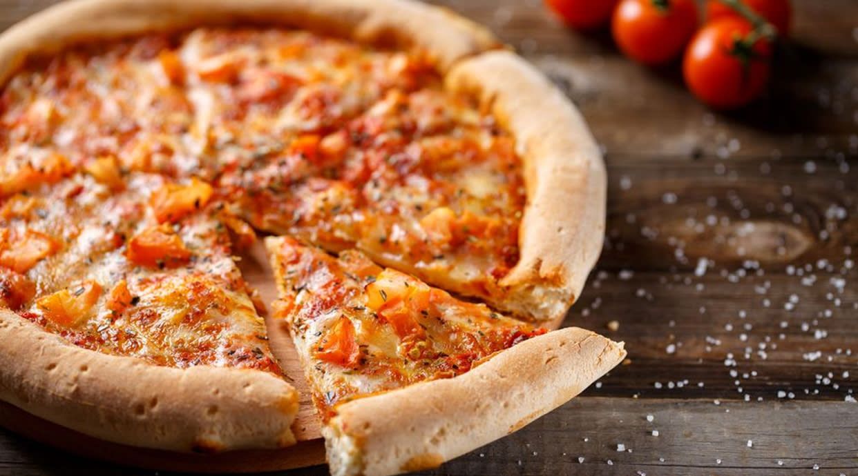 Tomate, mozzarella, champiñones, pepperoni, jalapeños y orégano