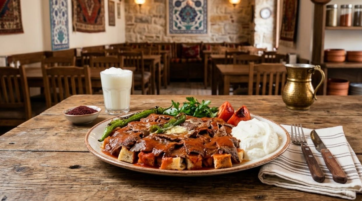 Finas láminas de carne asada servidas sobre pan tostado, cubiertas con salsa de tomate caliente y yogur suave. Un plato clásico, reconfortante y equilibrado, pensado para disfrutarse con calma.
