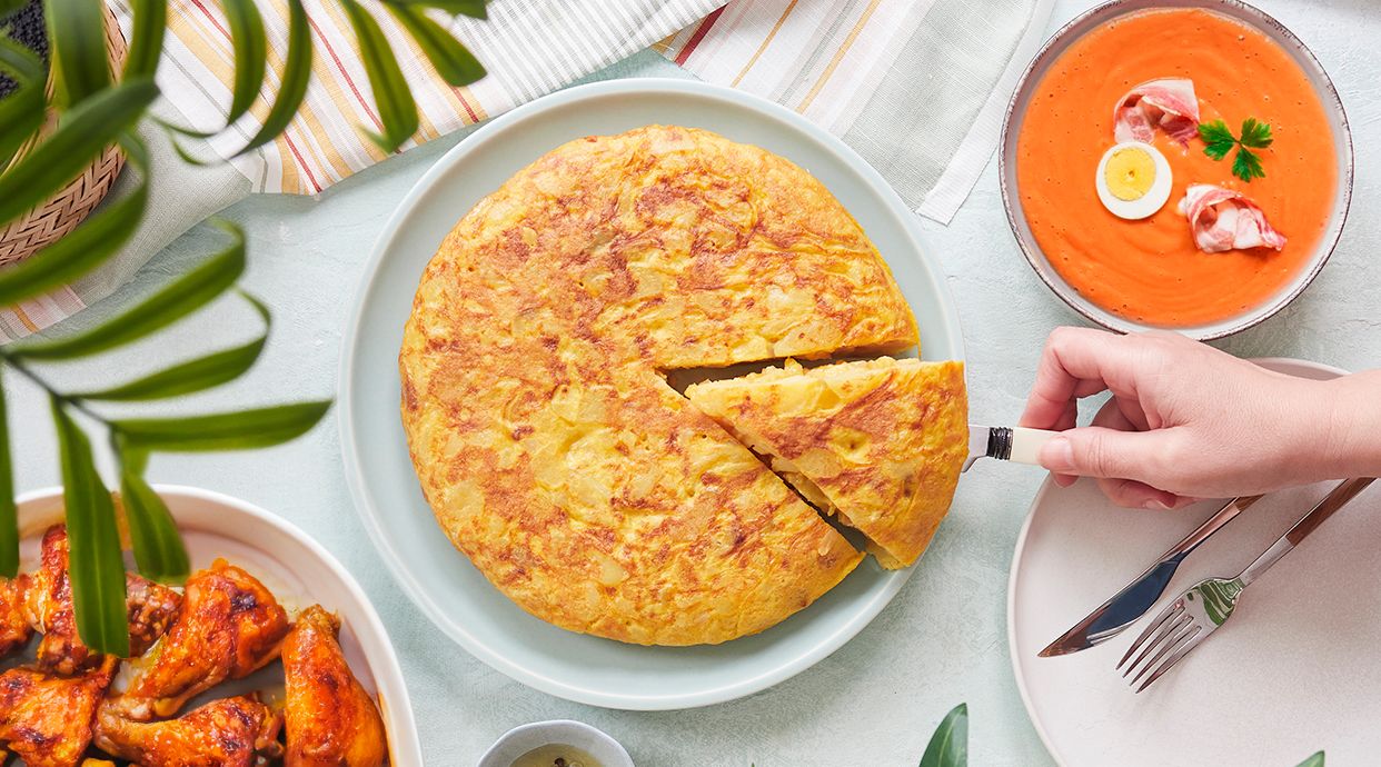 Tortilla completa. Alérgenos: huevo pasteurizado, albúmina. Nuestra tortilla española, con cebolla, te transportará a los sabores caseros de España, esponjosa y perfectamente cocida.