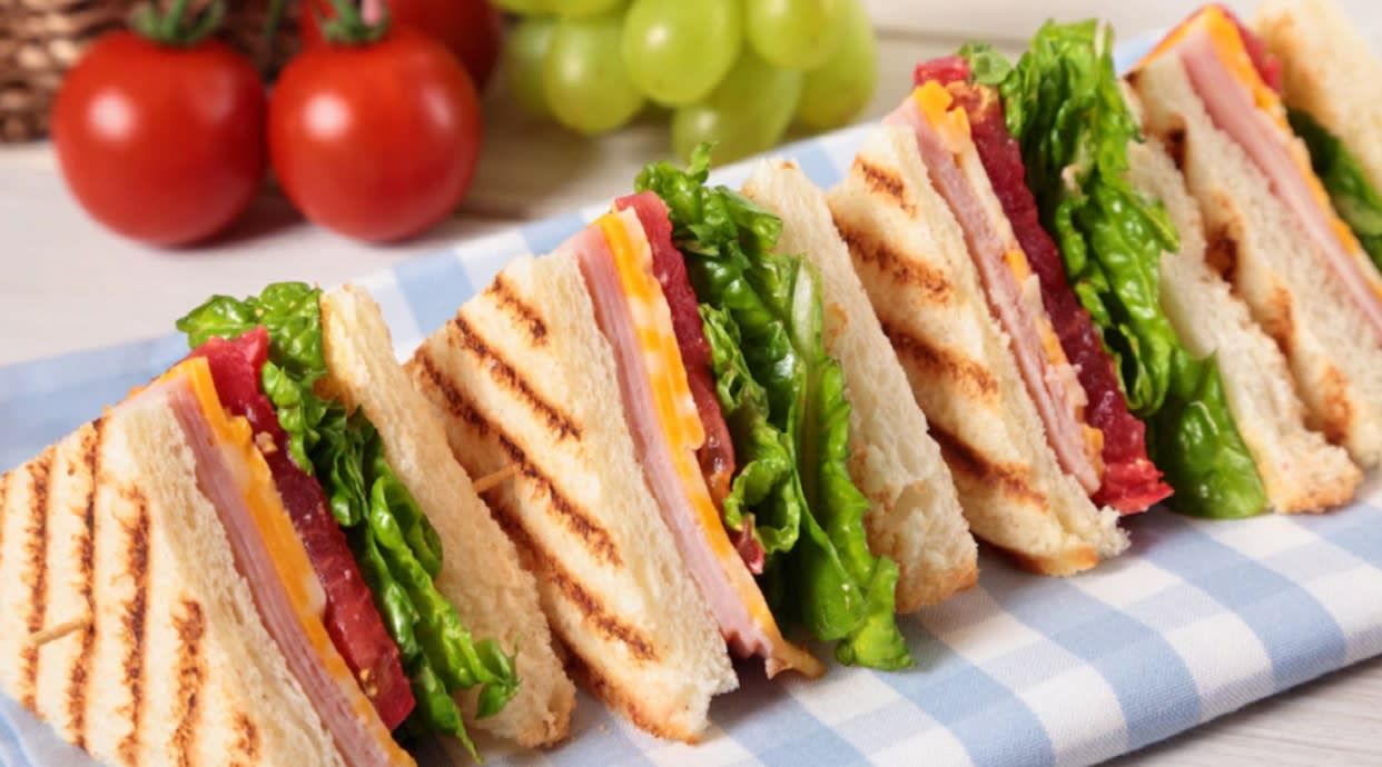 Jamón, bacon, filete de pollo, huevo, queso cheddar, lechuga, tomate, aguacate, mayonesa, kétchup y mostaza