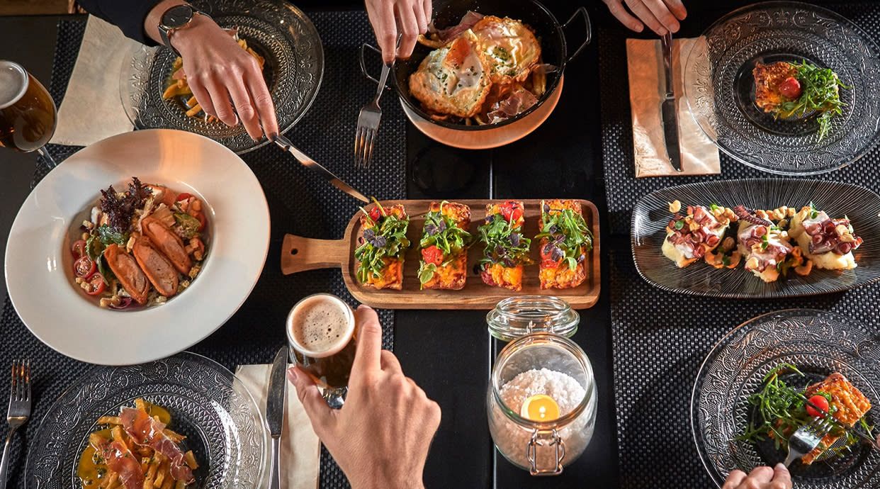 Langosta de mortadela italiana, rúcula, tomate confitado, burrata y pesto