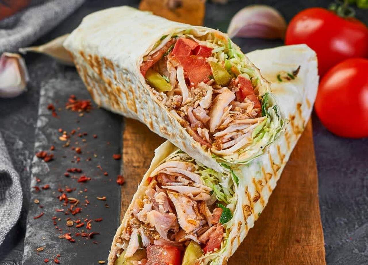 ქათმის ხორცი, ლავაში (ხორბლის ფქვილი, წყალი, მარილი), პომიდორი,ხახვი,წიწაკა,სალათის ფოთოლი კეტჩუპი, მაიონეზი, შეიცავს ალერგენებეს: (ხორბლის ფქვილი, კვერცხი )