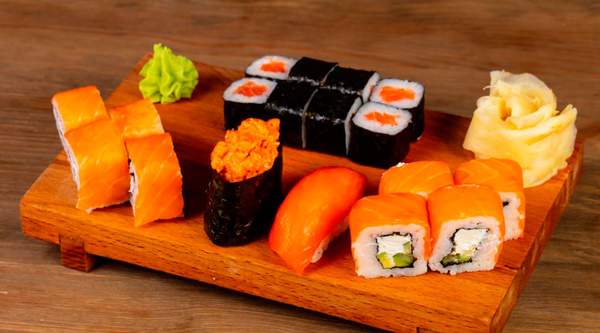 ბრინჯი, ორაგული, კრემ-ყველი, გველთევზა, ავოკადო, სოიოს სოუსი