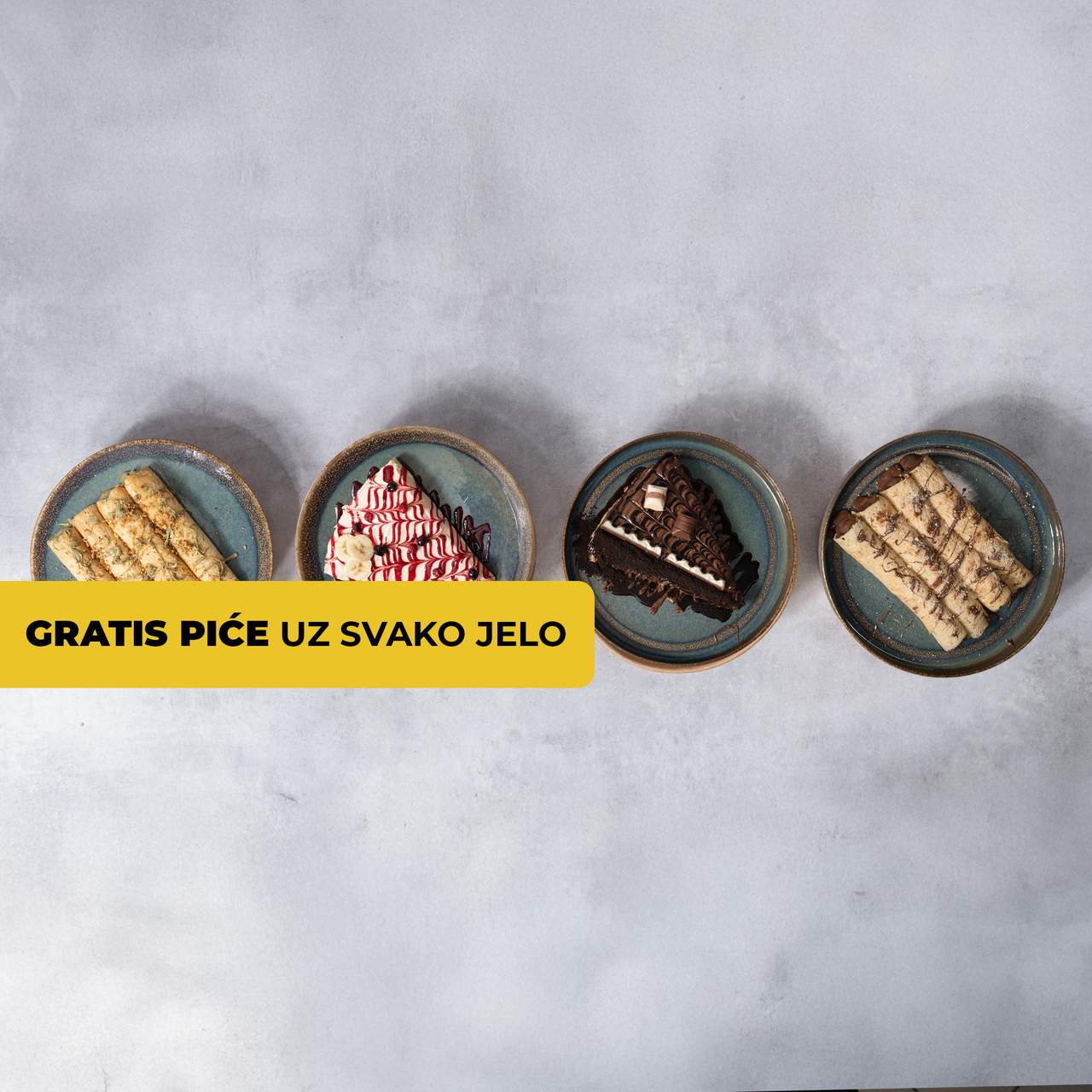 Čokoladna palačinka, Nutella, Oreo keks, Kinder čokoladice, šumsko voće, preljev čokolada