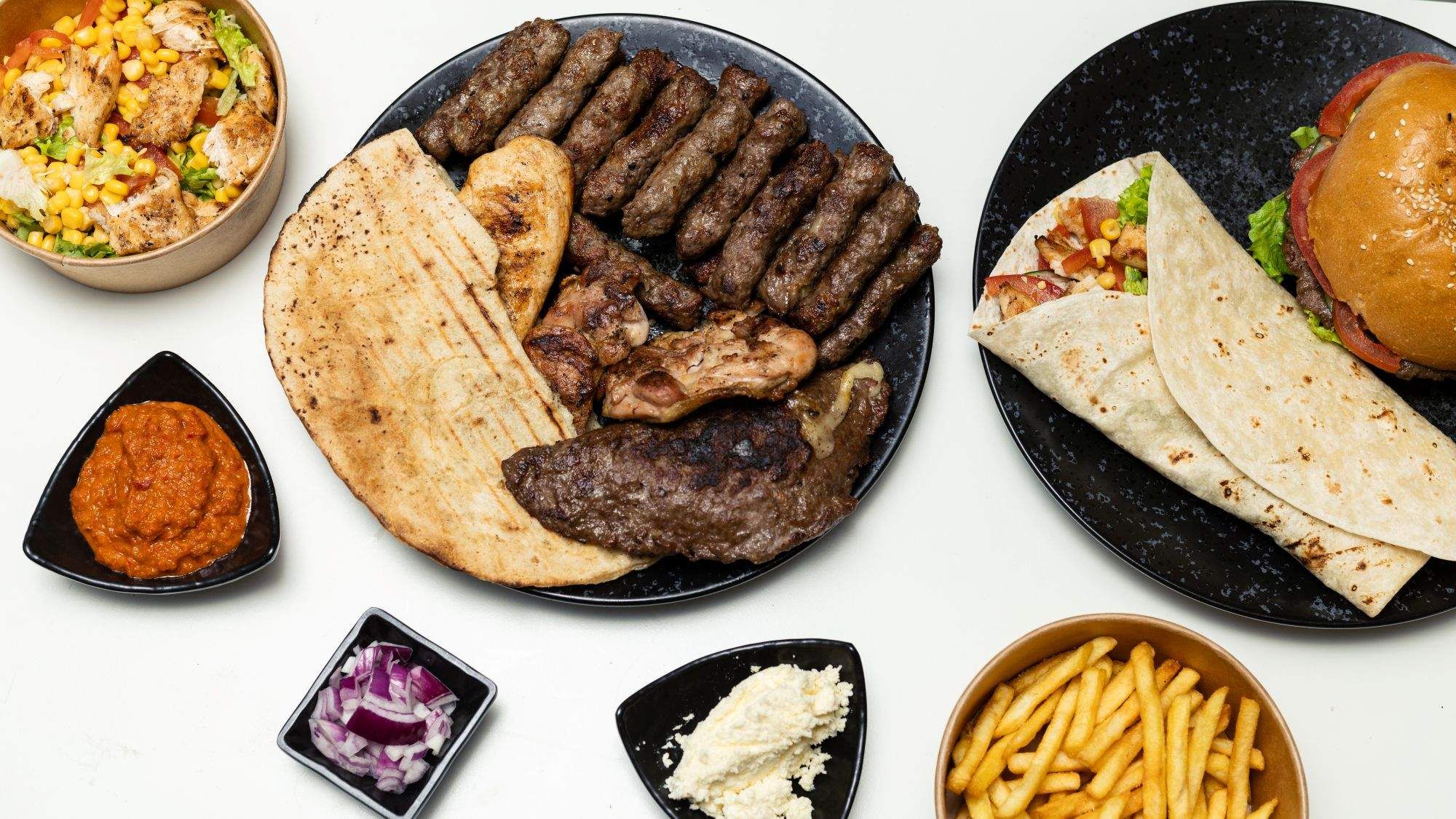 Ćevapi, somun, porcija po izboru, prilozi po izboru