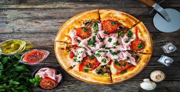 Pomodoro, mozzarella, cotto, funghi