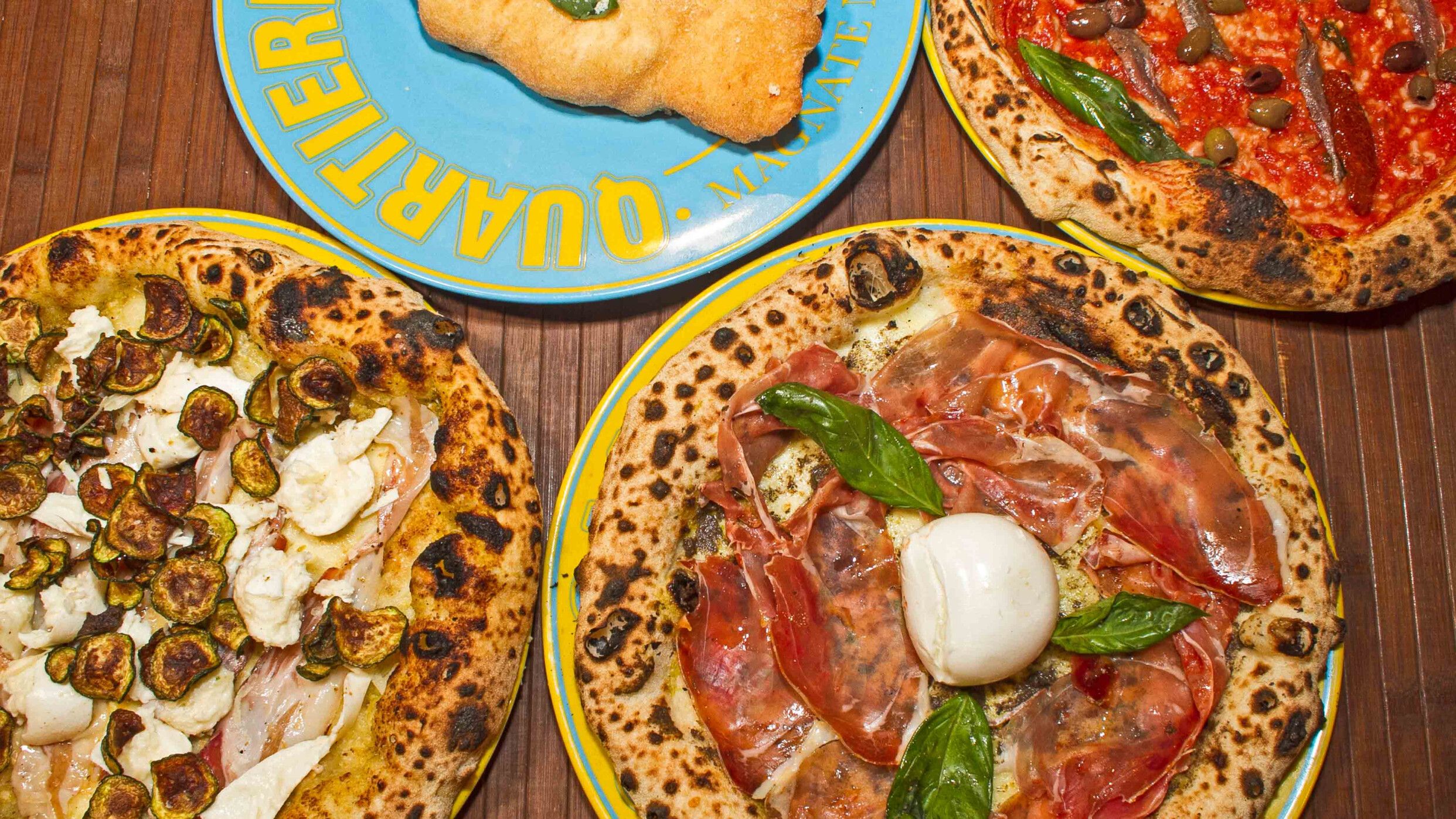Bufala campana D.O.P, crudo di Parma, rucola, basilico, olio EVO