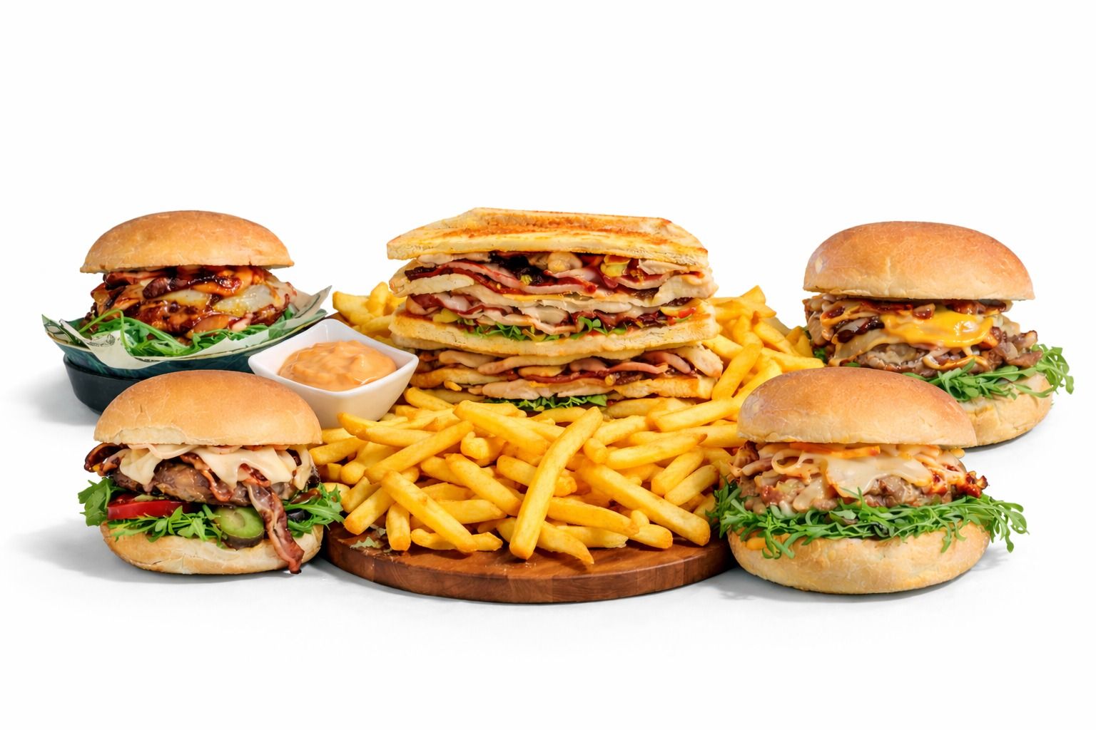 Doppio smash burger di manzo, uova fresche e cheddar fuso alla piastra, arricchito da salsa onion e guacamole fresca e cremosa, con bacon croccante, il tutto racchiuso nel nostro pane al latte realizzato secondo ricetta esclusiva.