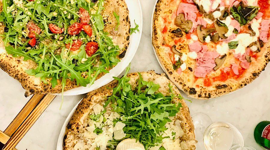 Pomodoro, fior di latte, formaggio gorgonzola, nduja e olive taggiasche