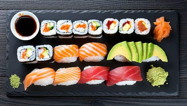 Pirinač, avokado, sveži sir, losos, teriyaki, jegulja