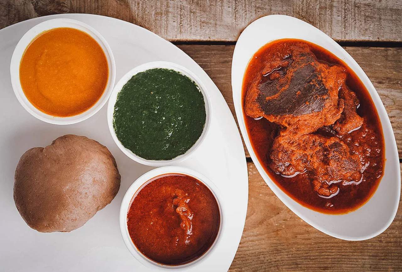 2 wraps of Amala, Gbegiri Eedu and soup with Assorted and goatmeat.