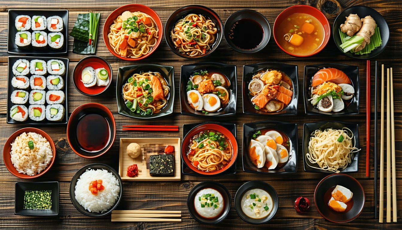 Gruby makaron Udon smażony z mieszanką warzyw i sosem, zdjęcie poglądowe