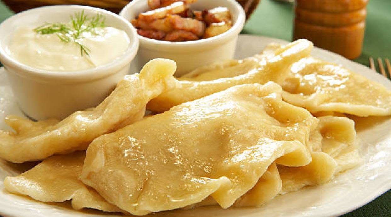 Pierogi z mięsem polane skwarkami, zamiana na masło prosimy o dopisanie w komentarzu