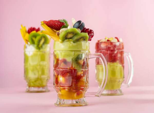 owoce sezonowe, szejk awokado( awokado , mleko), aszta "serek libański ", ananas, mango, miks orzechy, rodzynki, miód