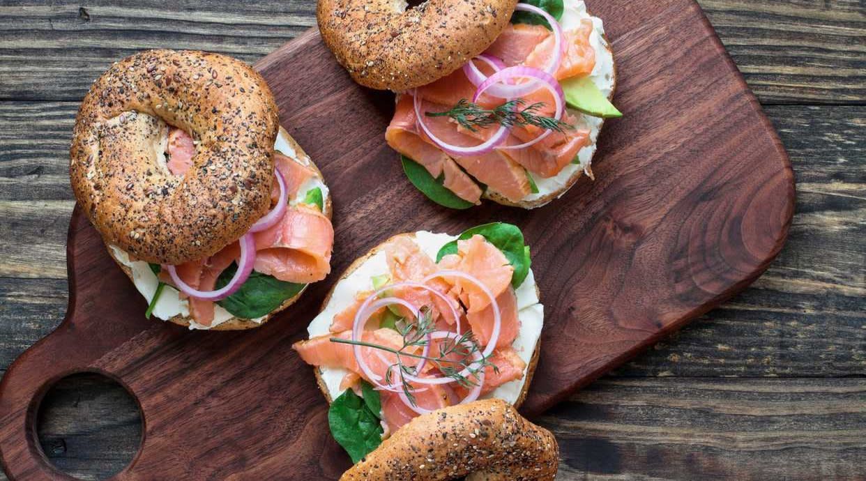 Bagel com Pasta de Atum, Queijo Gouda, Alface e Tomate