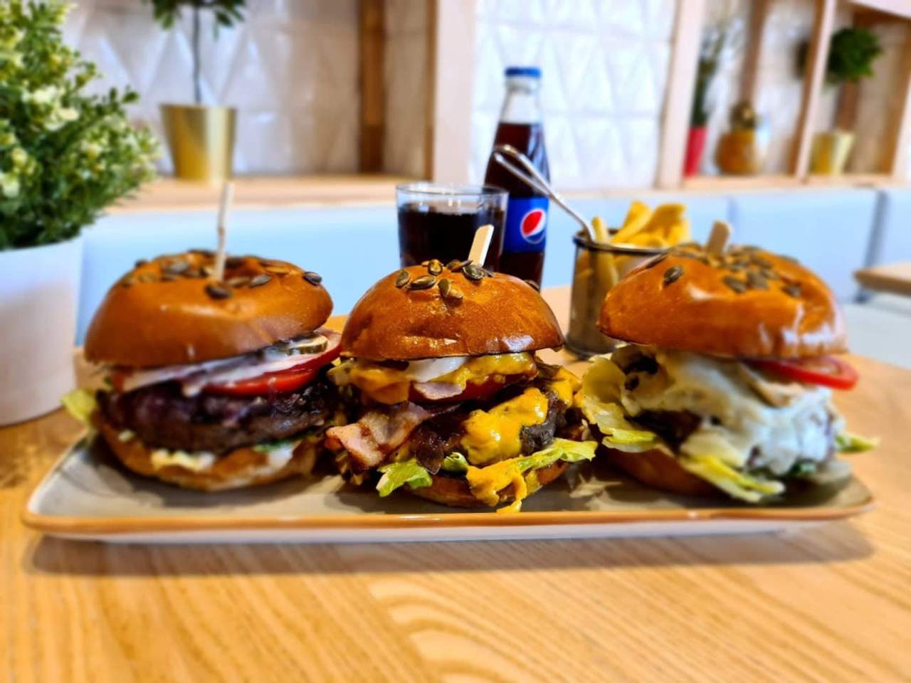 chifla burger, carne vita smash, sos burger, mix salata, castraveti murati
