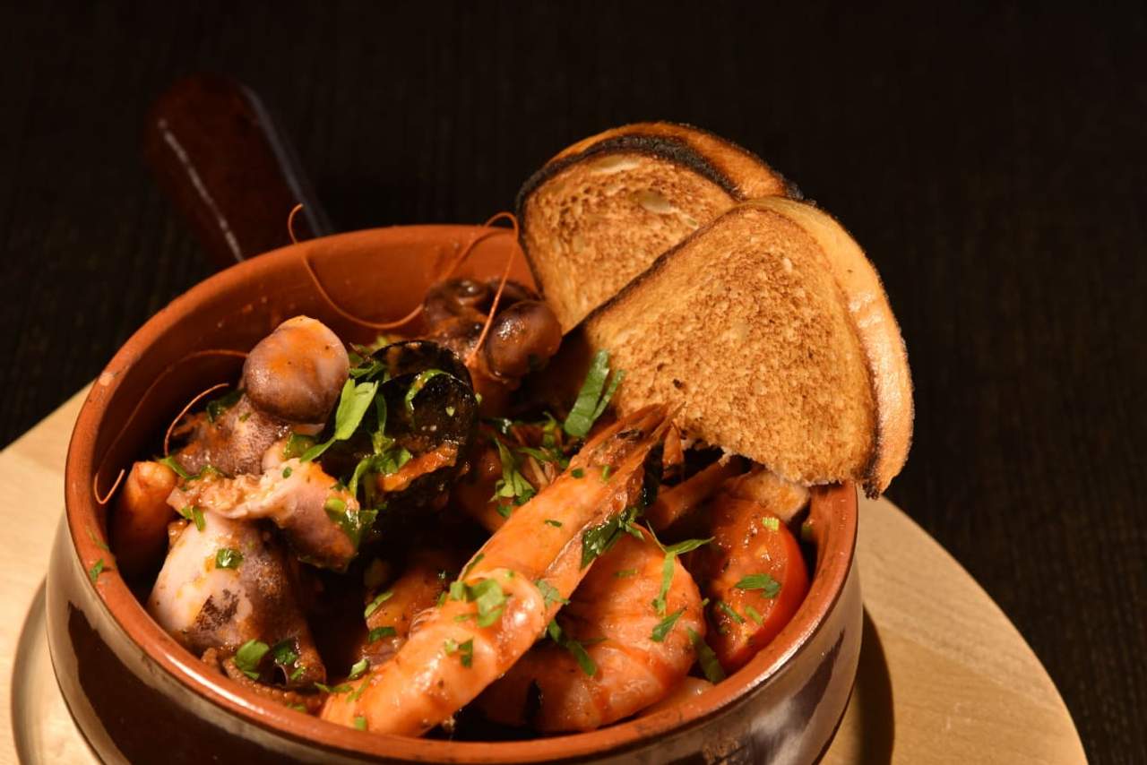 Creveți decorticați 200g, ulei de măsline 100ml, usturoi 50g, boia dulce, pătrunjel ,pâinea casei 140 gr