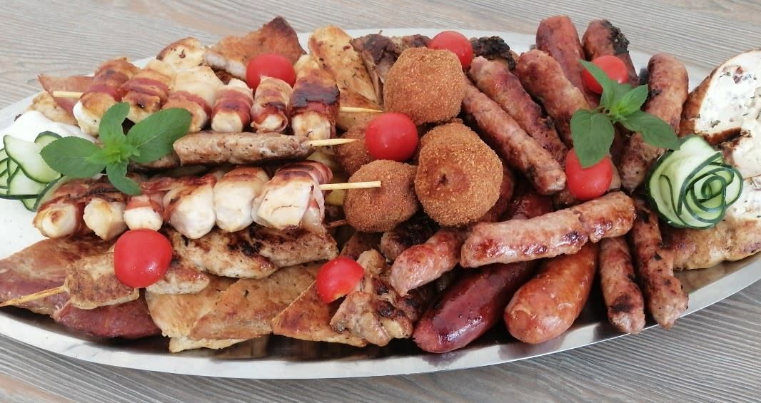 1 kilogram. Ćevapi, pileći file, pileći batak, dimljeno meso, kobasica, pomfrit i luk