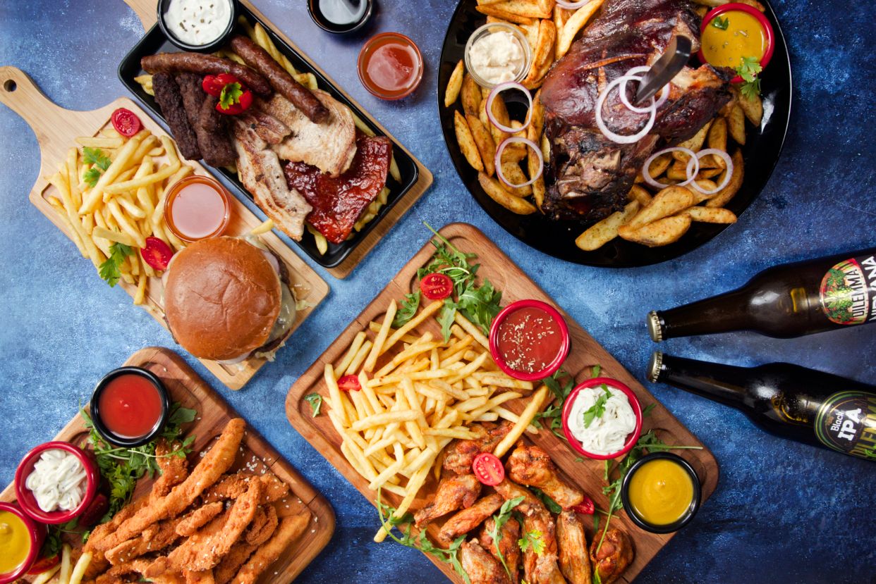 Picante kobasica 250g, kobasica sa kačkavaljem 250g, juneća kobasica 500g, wedges 500g, honey mustard, chilli, kečap