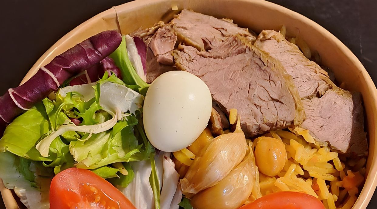 Рис "Басматі", яловичина, морква, цибуля, соняшникова олія, зіра, нут, прянощі.