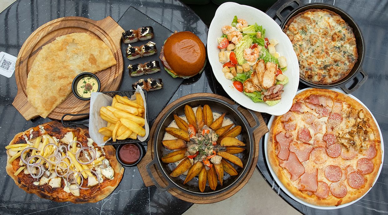 - Брускета з грушею сиром брі та фісташковою крихтою - Брускета з запеченим болгарським перцем, в'яленими томатами та фетою - Брускета з сиром філадельфія, тар-таром з чері та пармезаном
