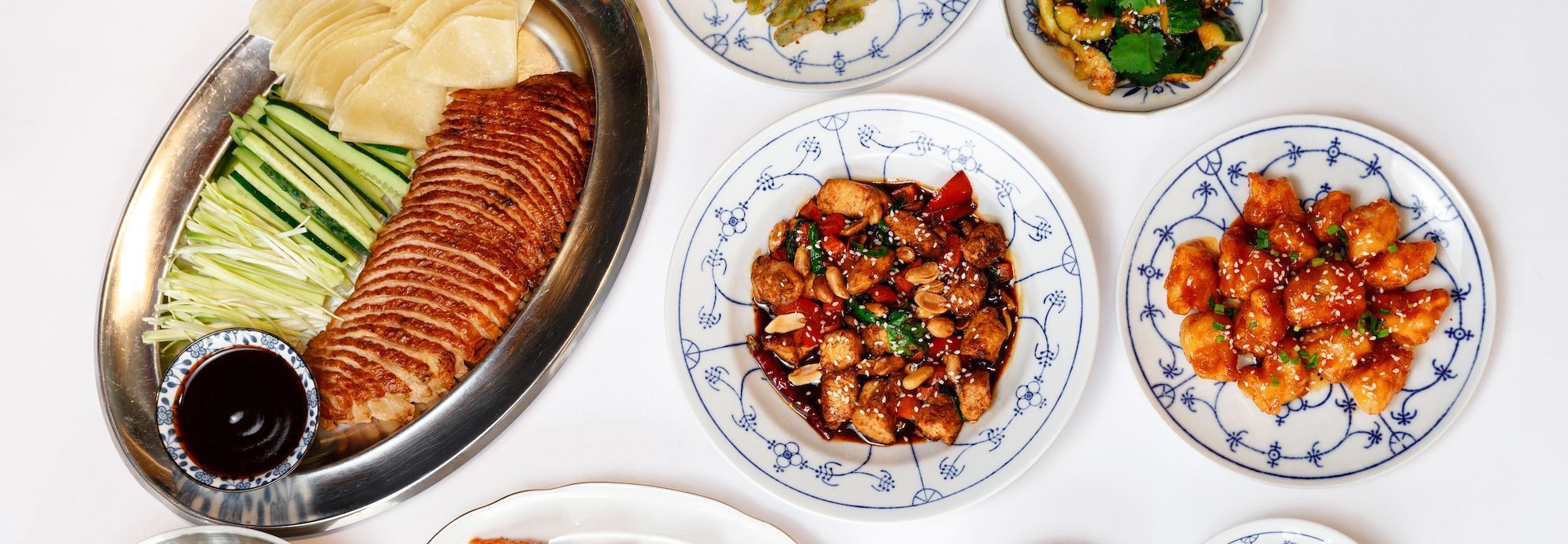 соковиті качині крильця в хрусткому клярі, обсмажені з пореєм, сичуаньським перцем і спеціями. Алергени: яйце, глютен, соєвий соус, кунжут