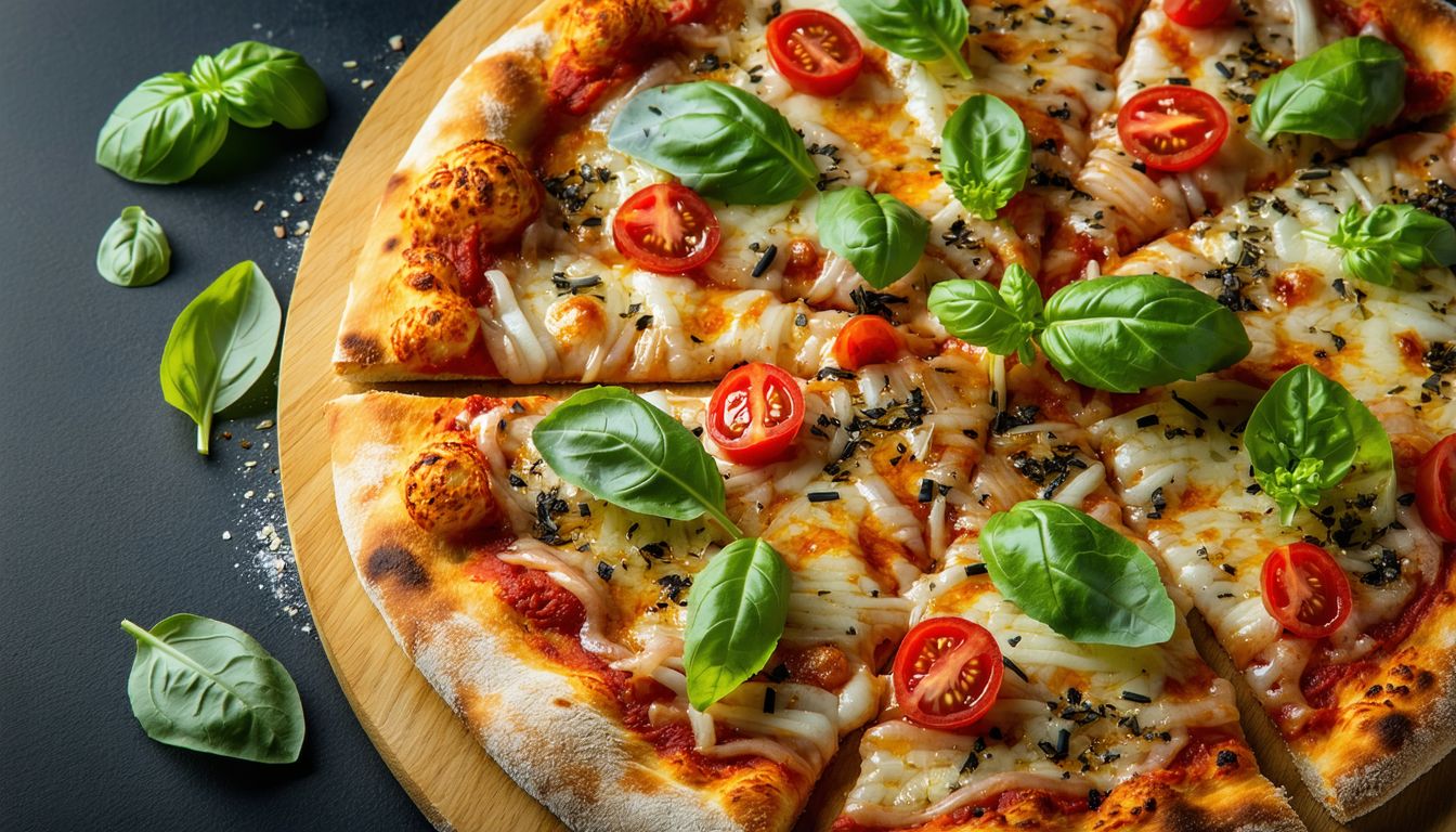 Яскрава та соковита піца з овочами: болгарський перець, червона цибуля, маслини, оливки та ніжна фета. Легкий та апетитний вибір для справжніх гурманів.