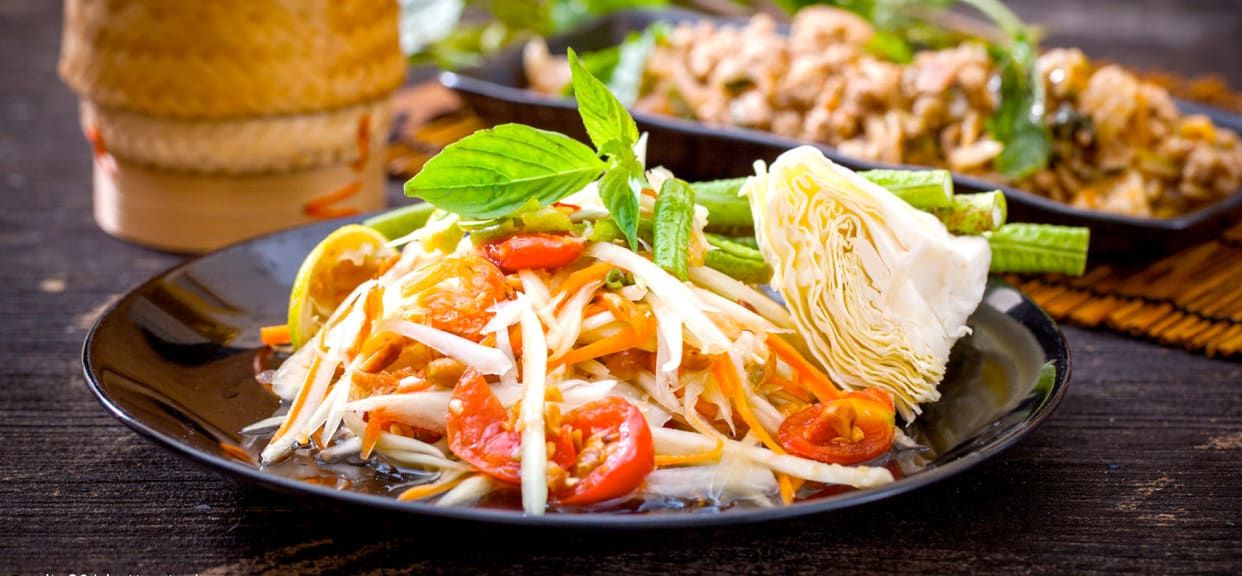 Spicy & sour raw mango salad with an option of crispy fish served with Thai dressing