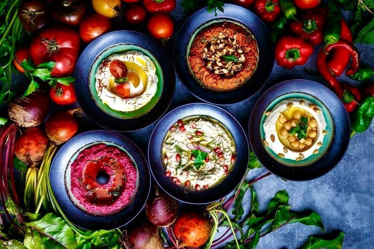Քեբաբ (8 հատ), հումուս 1 բաժին, մութաբալ 1 բաժին, մուհամարա 1 բաժին, ամառային աղցան 1 բաժին