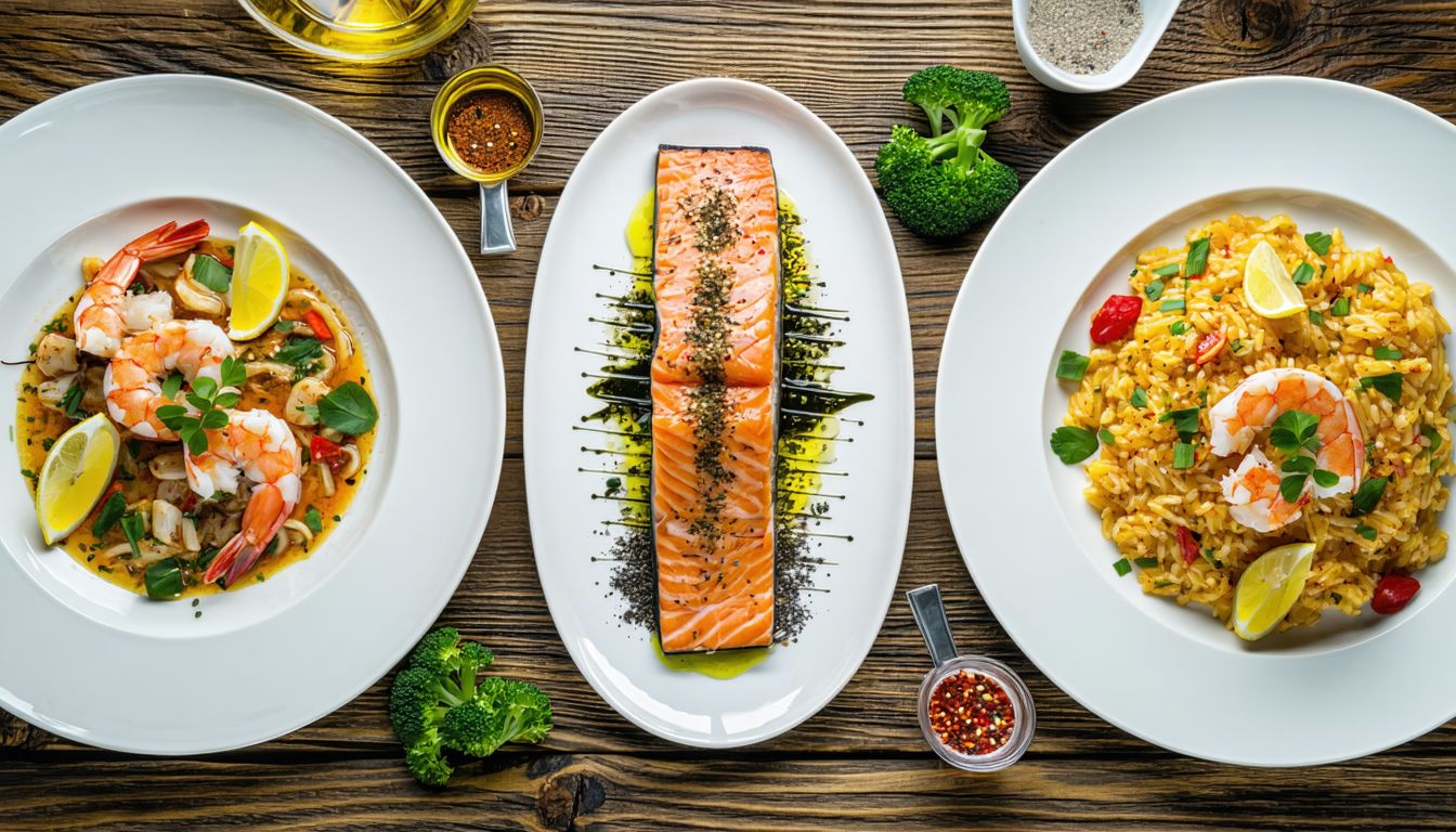 Riža, plodovi mora, sos