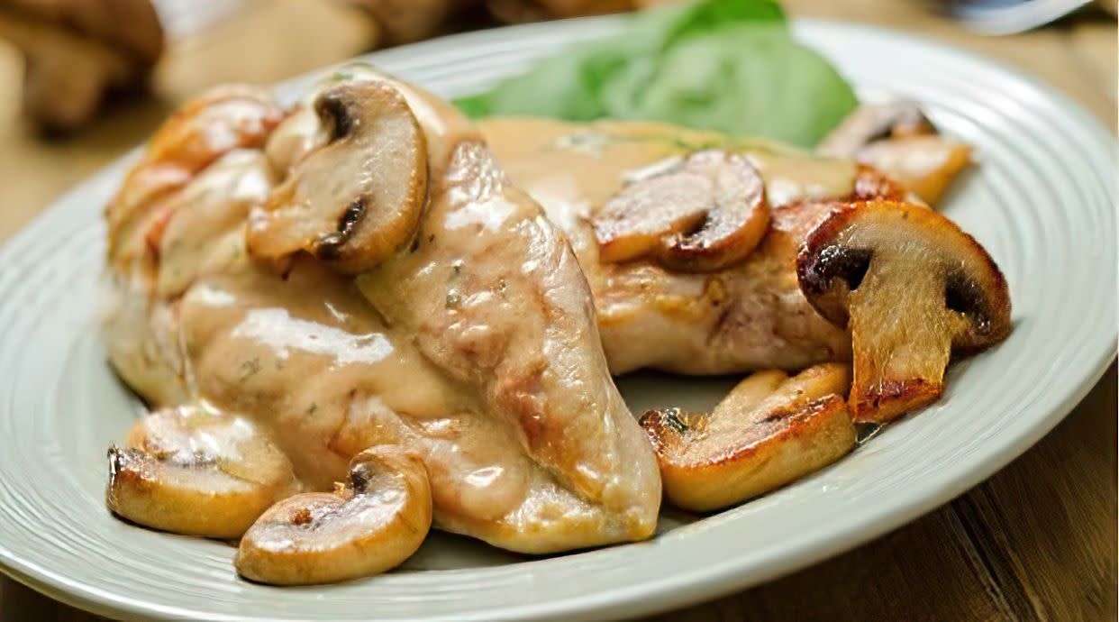 Пиле с картофено пюре и гъбен сос