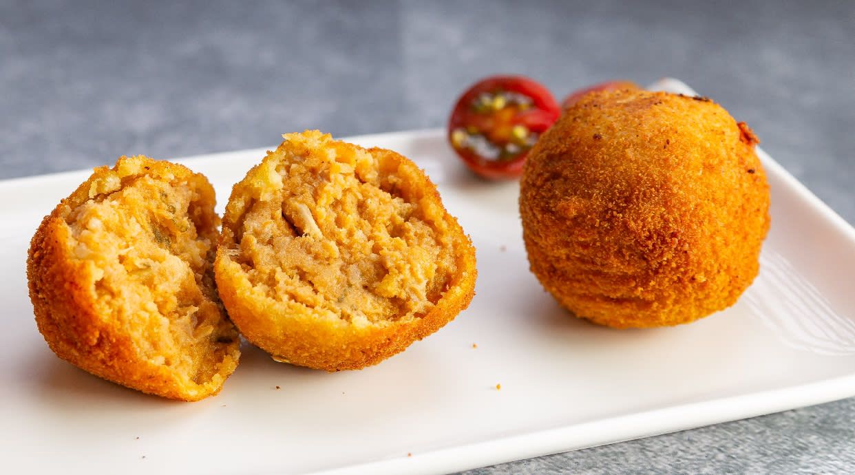 Masa en forma de bolita rellena de jamón Ibérico